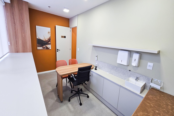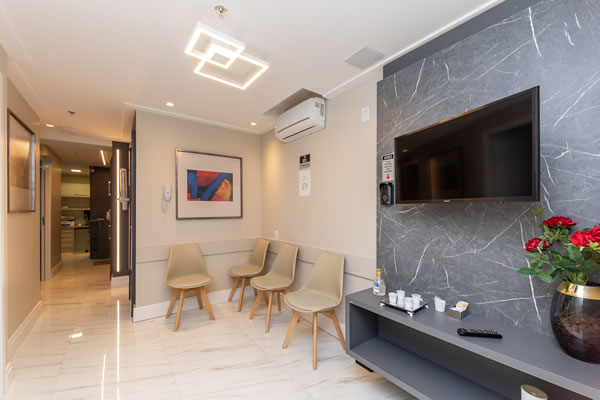 O ambiente também oferece água e café a disposição para profissionais e pacientes, possuindo banheiro exclusivo para profissionais/funcionários e outro para pacientes com trocador. Estacionamento de fácil acesso.