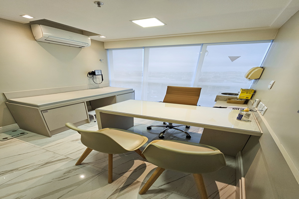 A estrutura consiste em um ambiente muito agradável, novo e climatizado. O espaço é constituído por 11 consultórios de alto padrão (abaixo com maiores detalhes), sendo TODAS com vista.