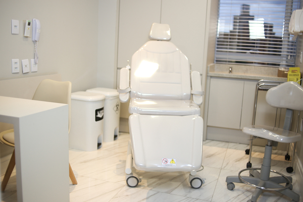 Sala 10 (maior) – Estética: maca elétrica, bancos com e sem encosto, mesa retrátil para anotações, pia com dispenser de saboneteira e papel toalha para higienização de mãos, álcool gel à disposição, DESCARPACK para descarte de agulhas. Mala ou gaveta com chave de uso exclusivo como porta-volume.